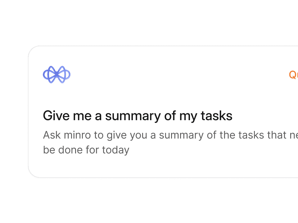 Minro is always within reach, so you can review tasks, get context, and take action without switching tools or breaking focus.