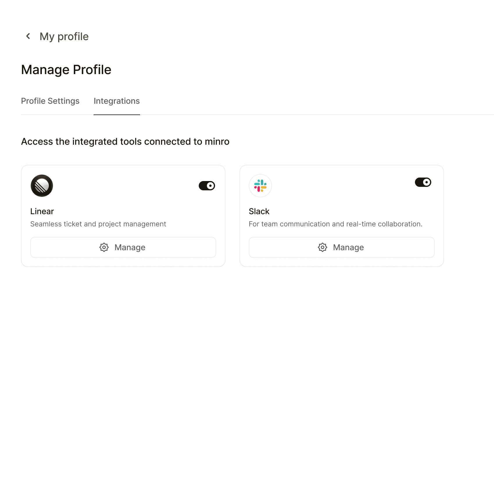 Minro doesn't just transcribe what you say. It pulls context from your connected tools — Slack threads, GitHub commits, existing tickets — and builds a complete picture. Every ticket comes out structured, contextualized, and actionable.
